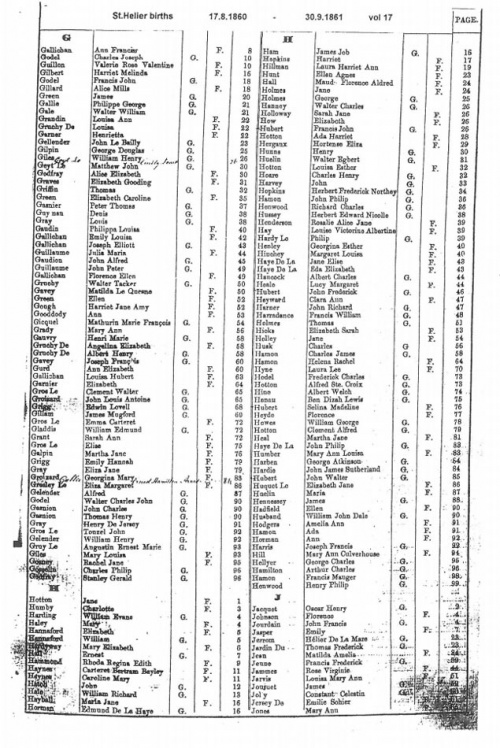A typical page from the Superintendent Registrar's index of St Helier birth registrations
