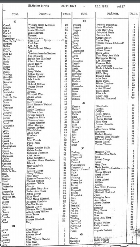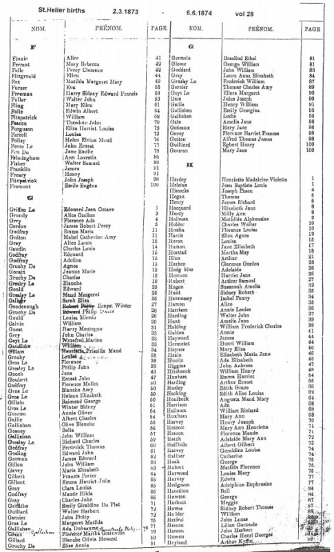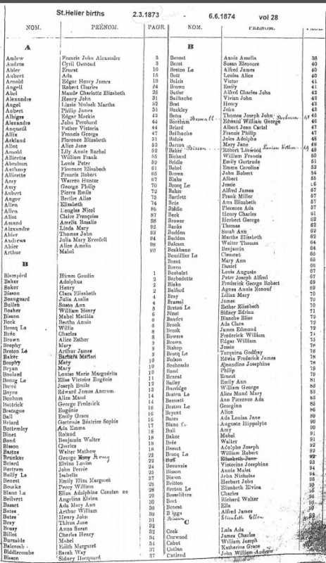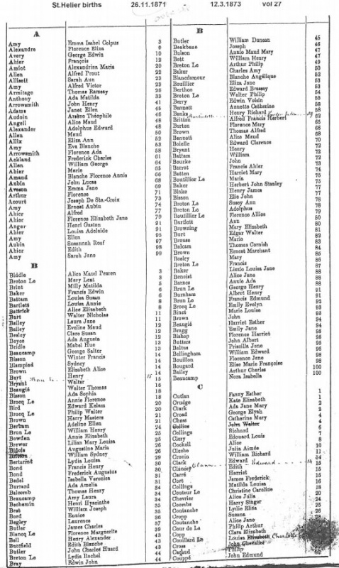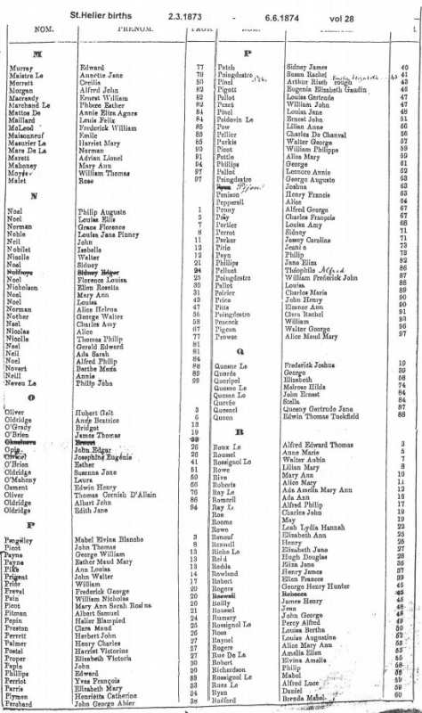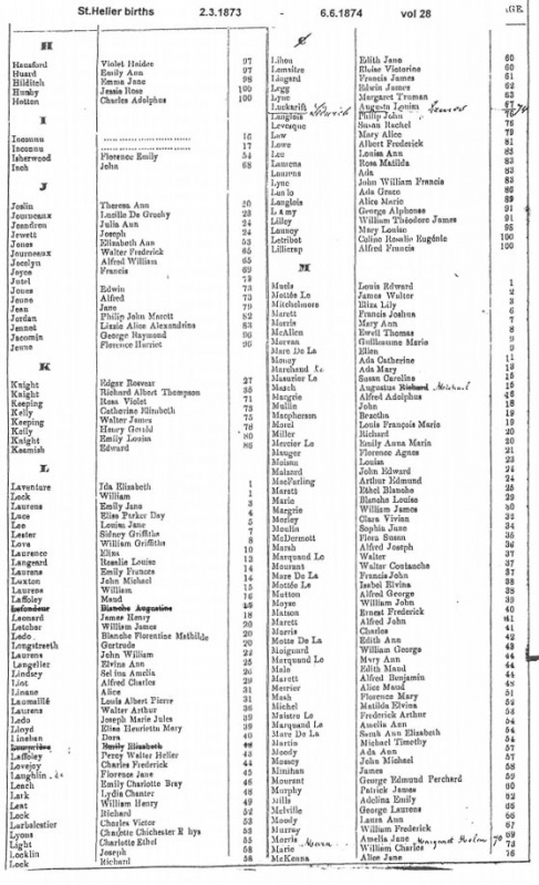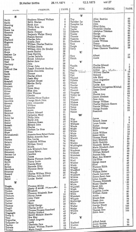 St Helier births 1871-1874