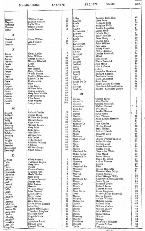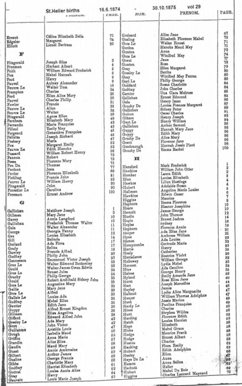 St Helier births 1874-1877