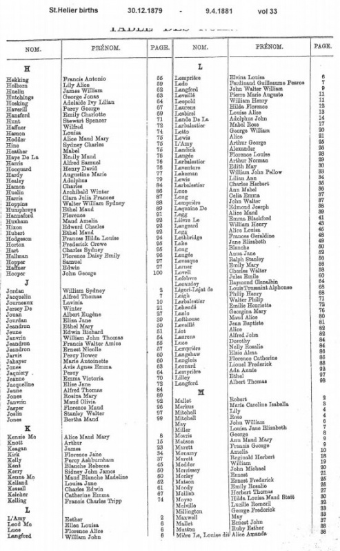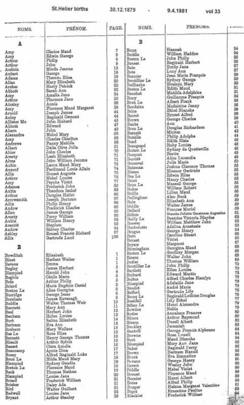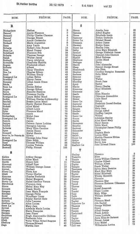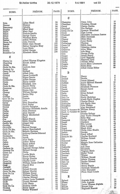 St Helier births 1879-1882