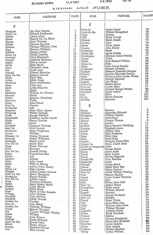 This page contains images of the Registrar's indexes of births registered in St Helier from 30 December 1879 to 4 August 1882