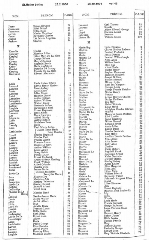 St Helier births 1898-1901