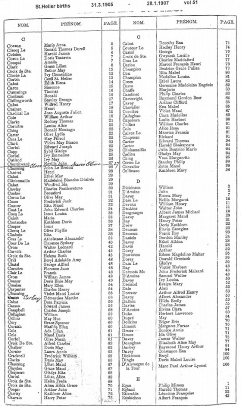A typical page from the Superintendent Registrar's index of St Helier birth registrations