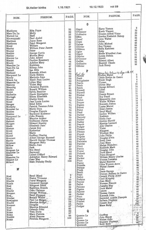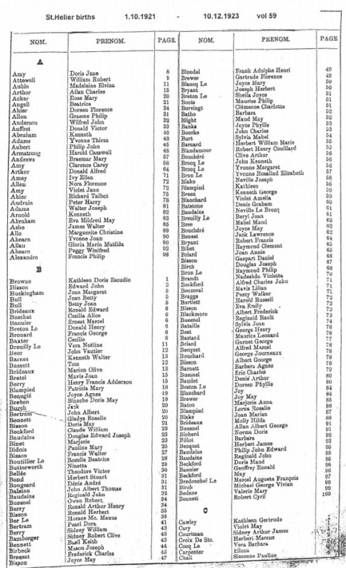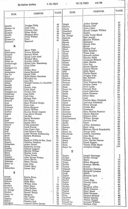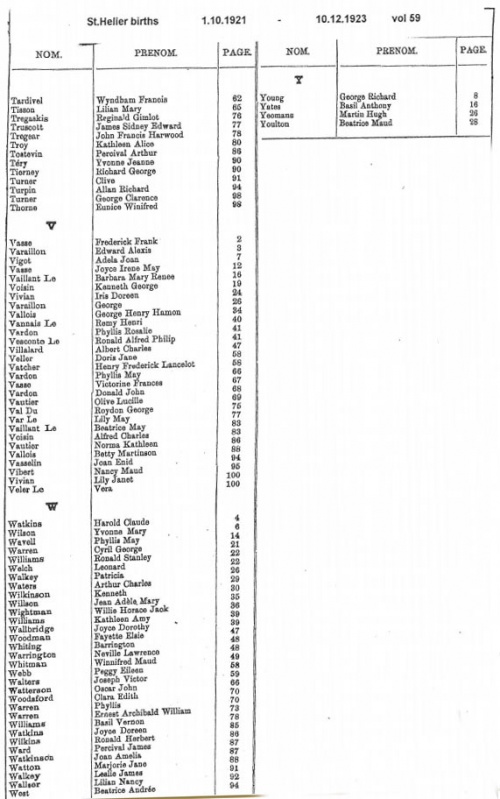 This page contains images of the Registrar's indexes of births registered in St Helier from 1 October 1921 to 27 January 1926