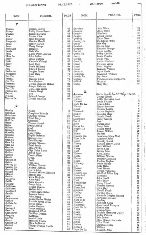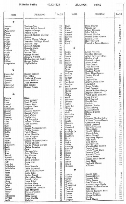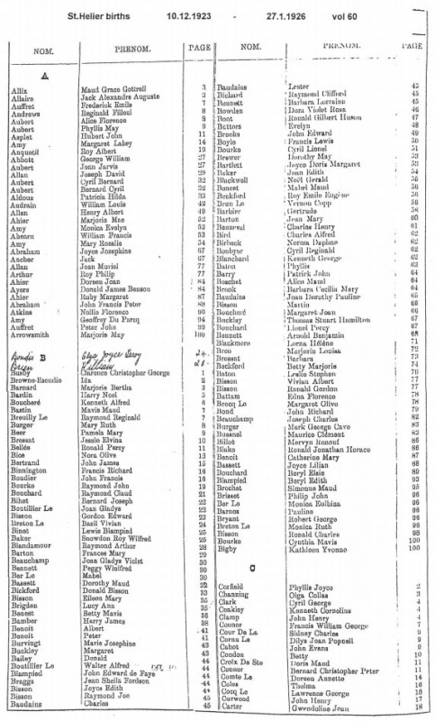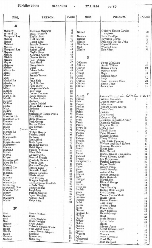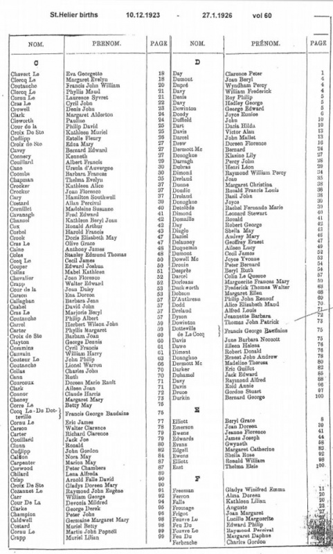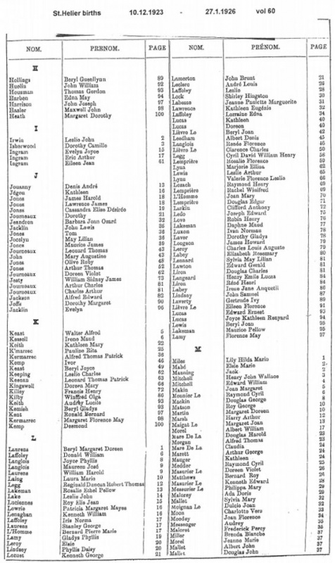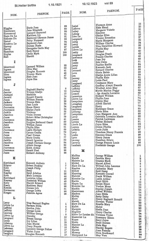 A typical page from the Superintendent Registrar's index of St Helier birth registrations