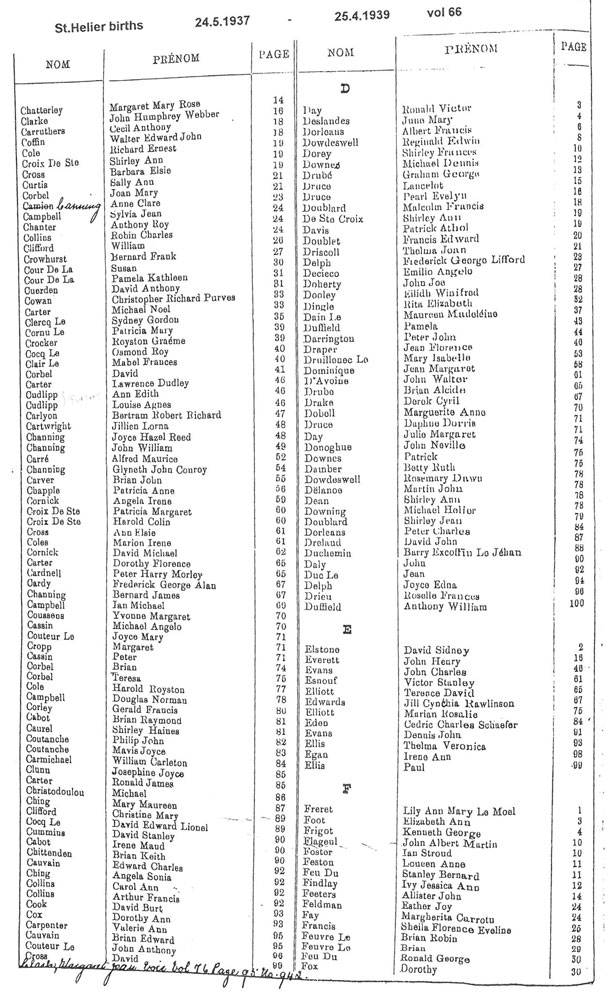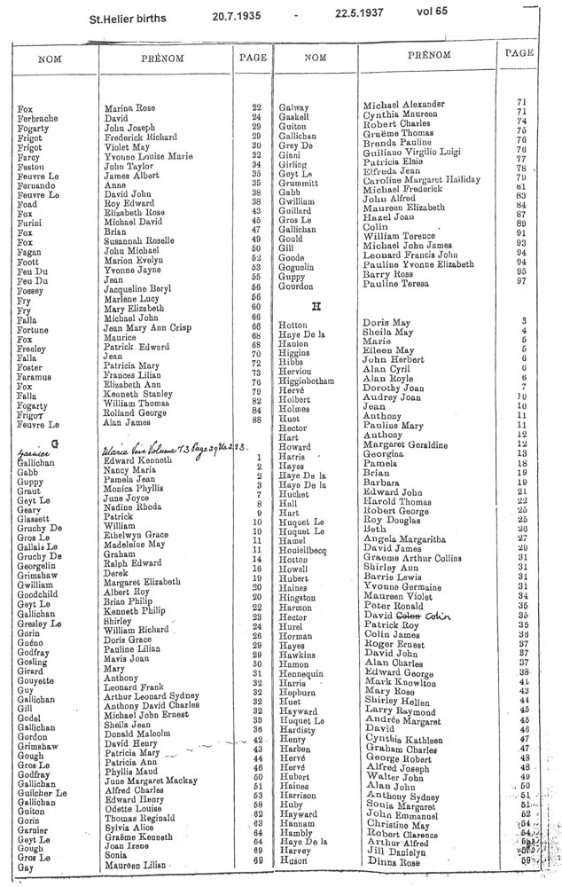 This page contains images of the Registrar's indexes of births registered in St Helier from 22 July 1935 to 25 April 1939
