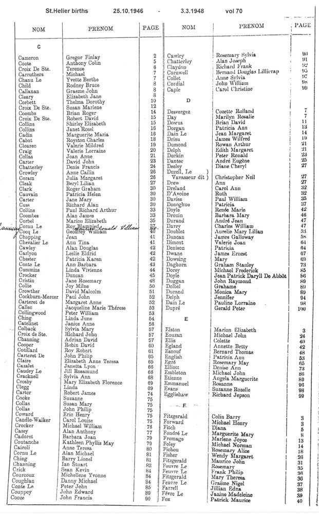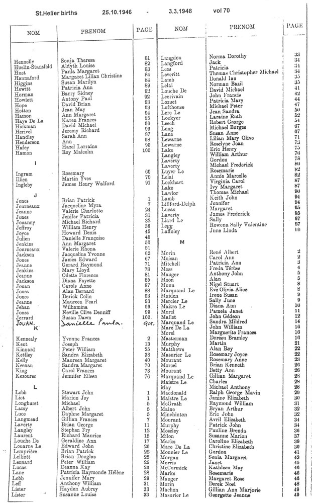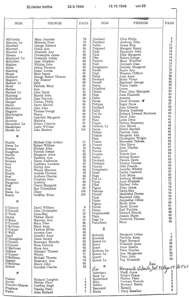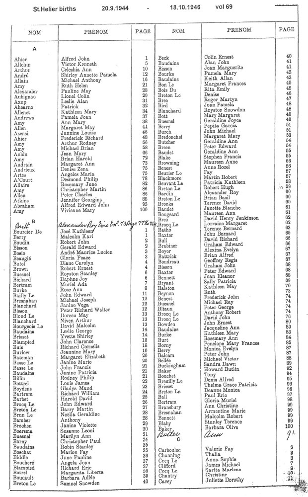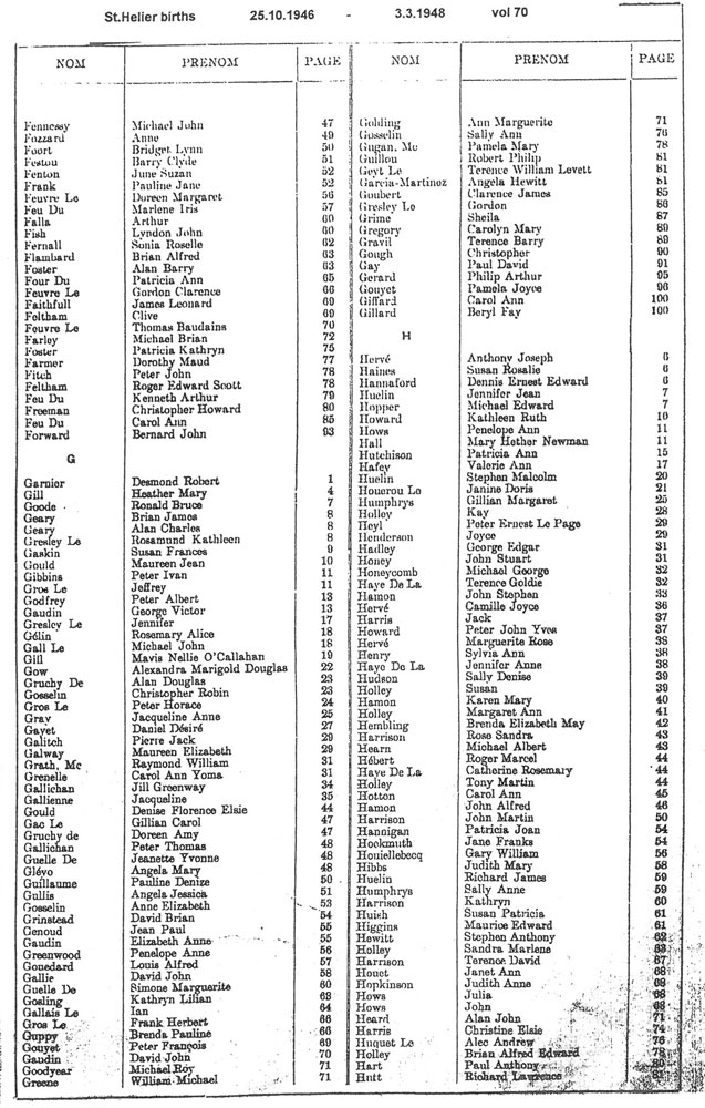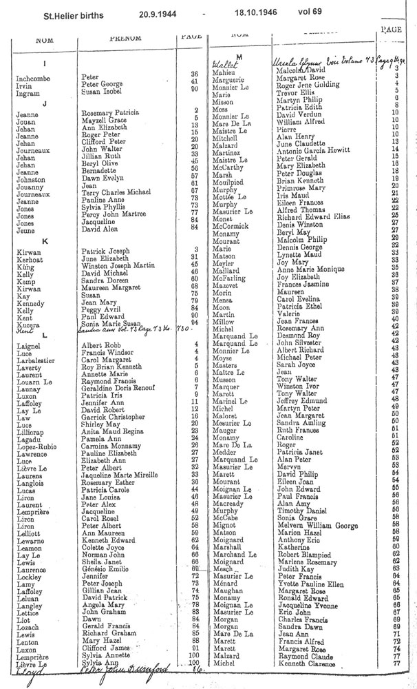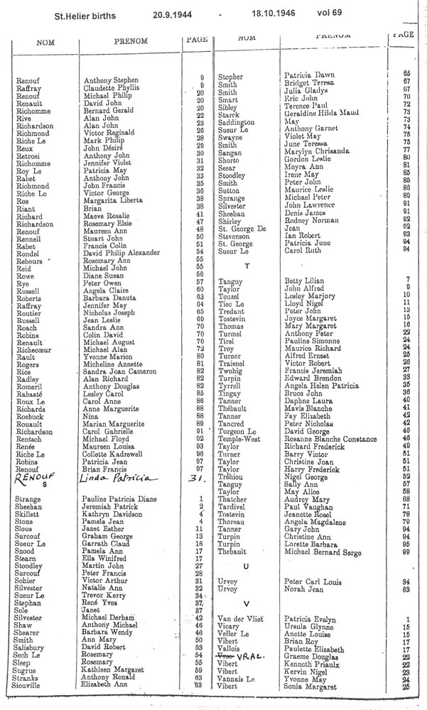 This page contains images of the Registrar's indexes of births registered in St Helier from 20 September 1944 to 3 March 1948
