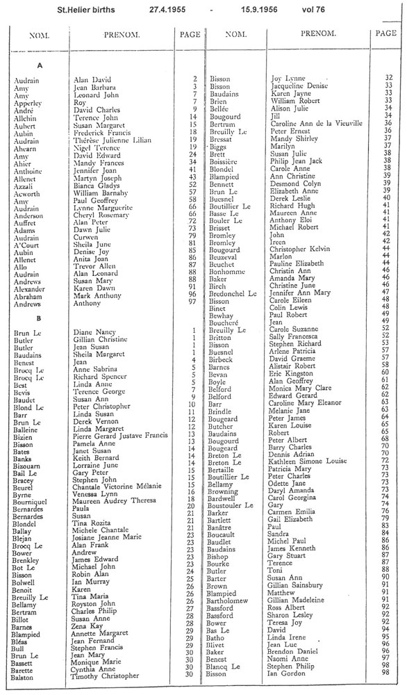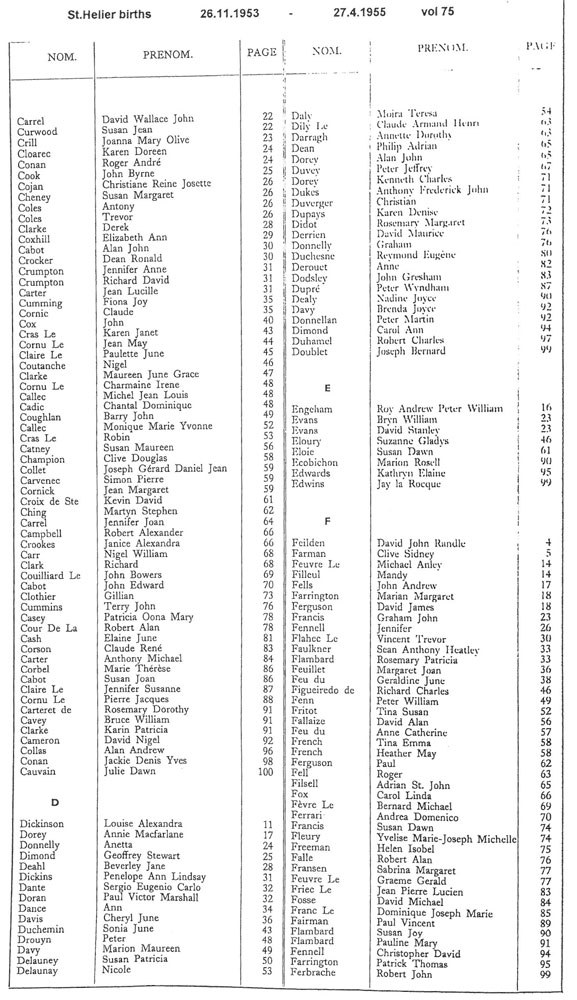 This page contains images of the Registrar's indexes of births registered in St Helier from 26 November 1953 to 15 September 1956.