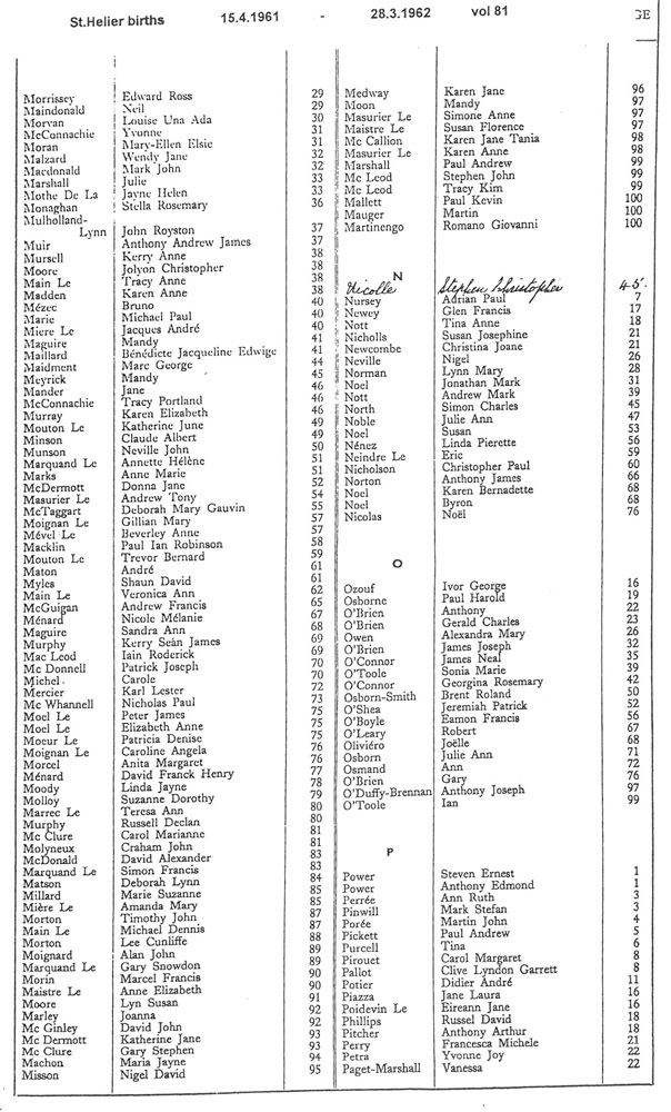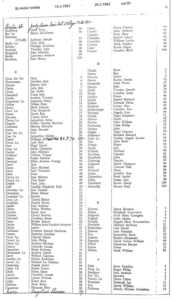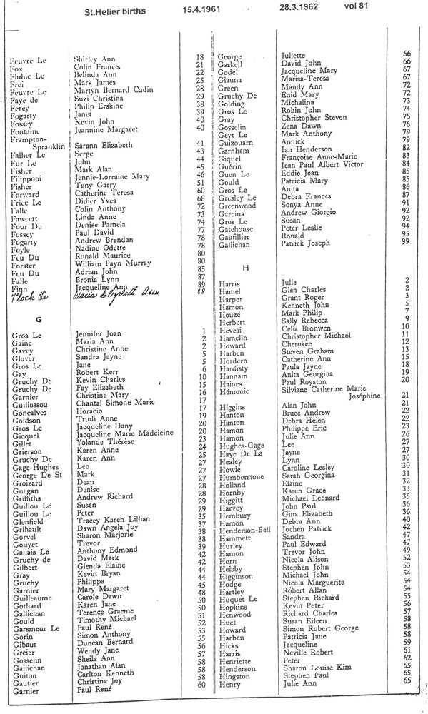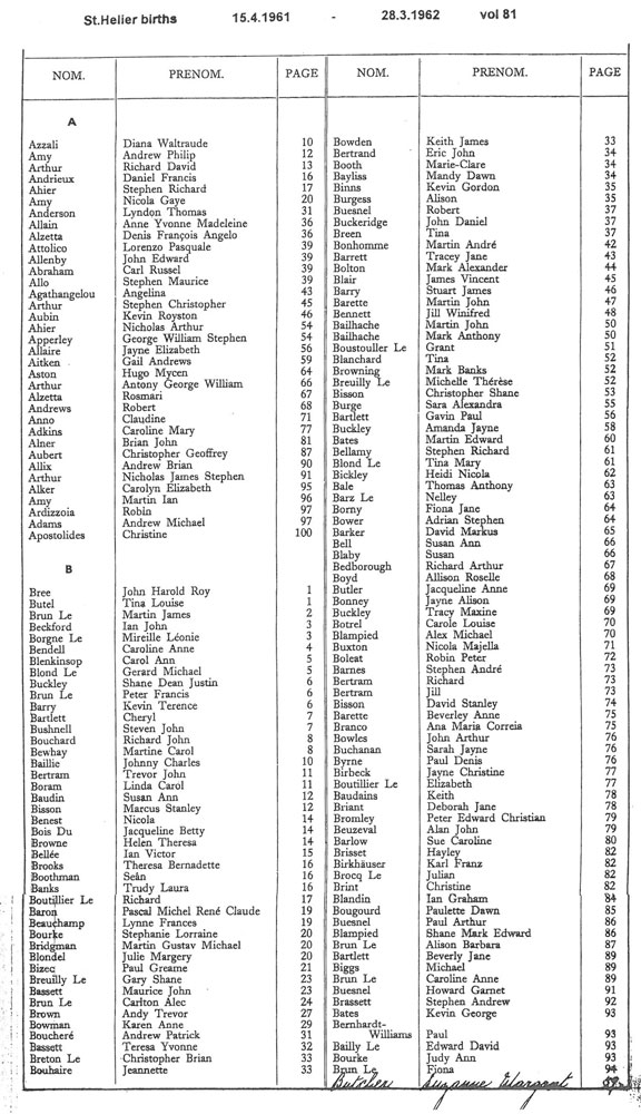 St Helier births 1961-1963