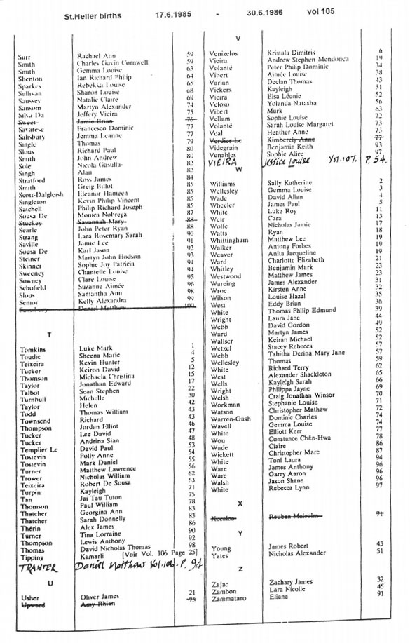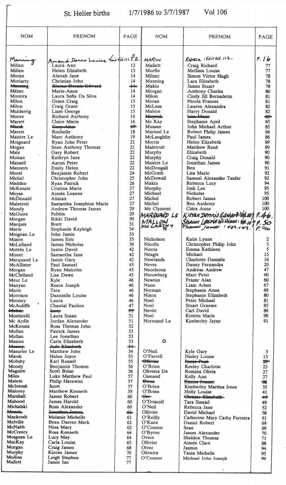 St Helier births 1985-1987