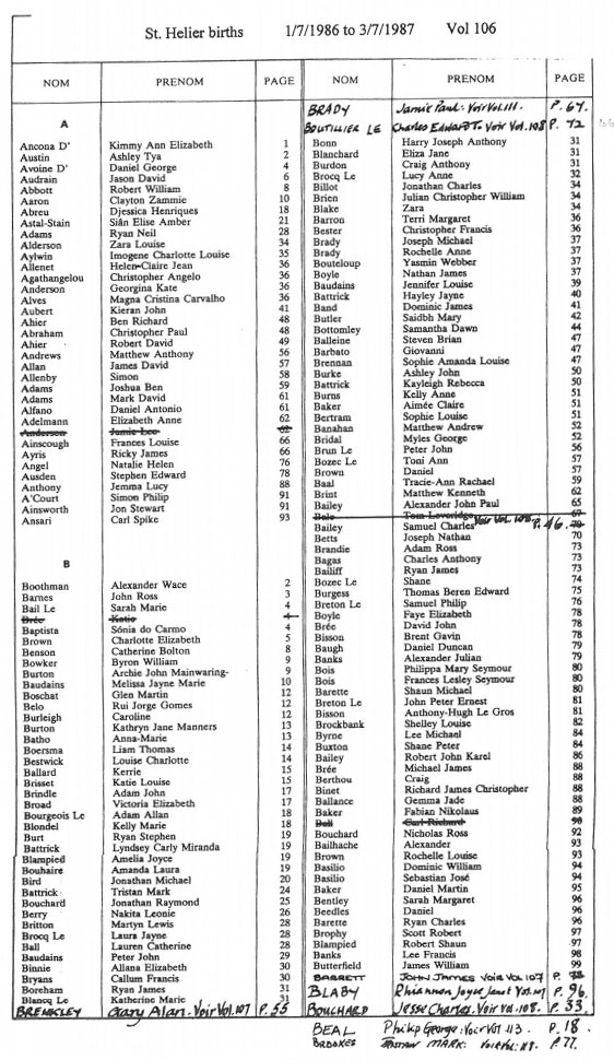 St Helier birth registrations