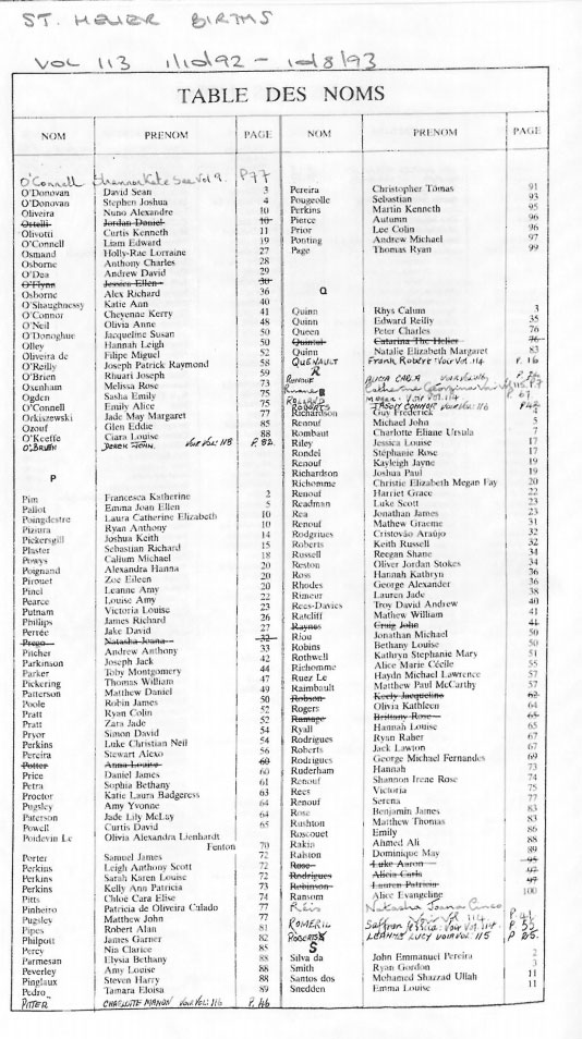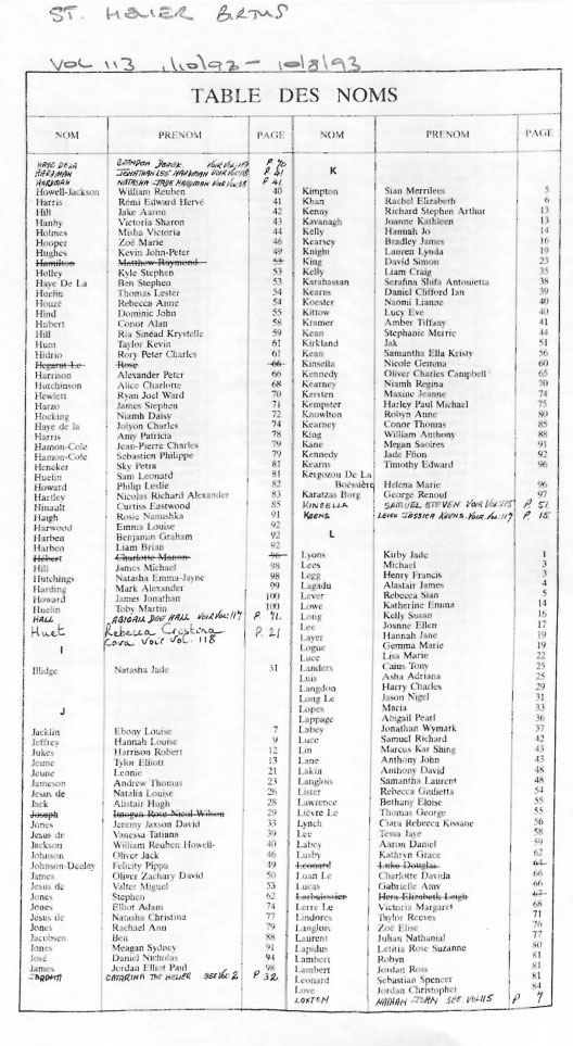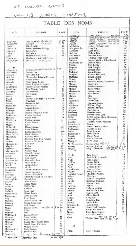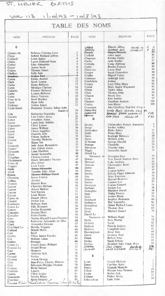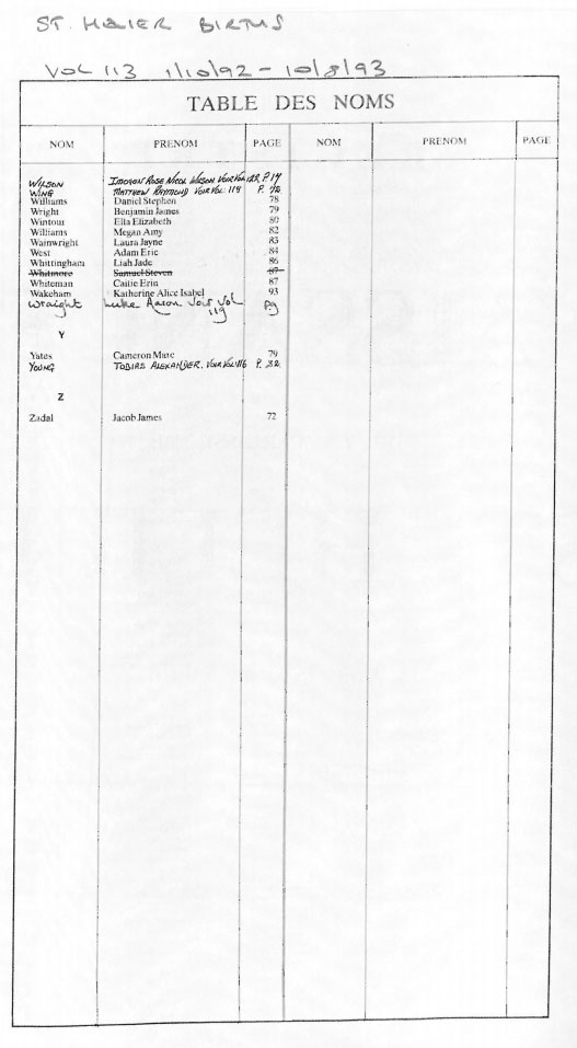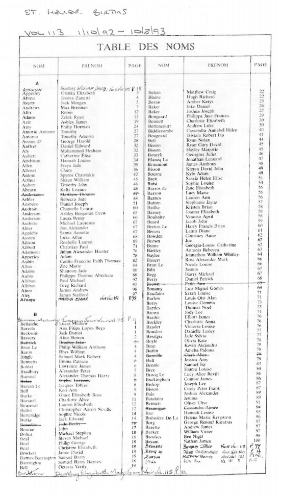 This page contains images of the Registrar's indexes of births registered in St Helier from 1 Octobr 1992 to 3 June 1994