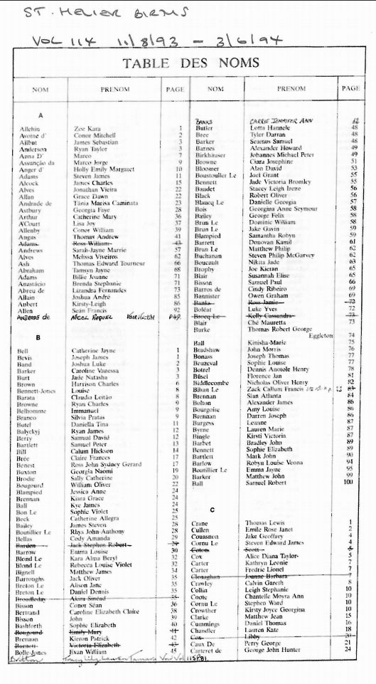 St Helier birth registrations