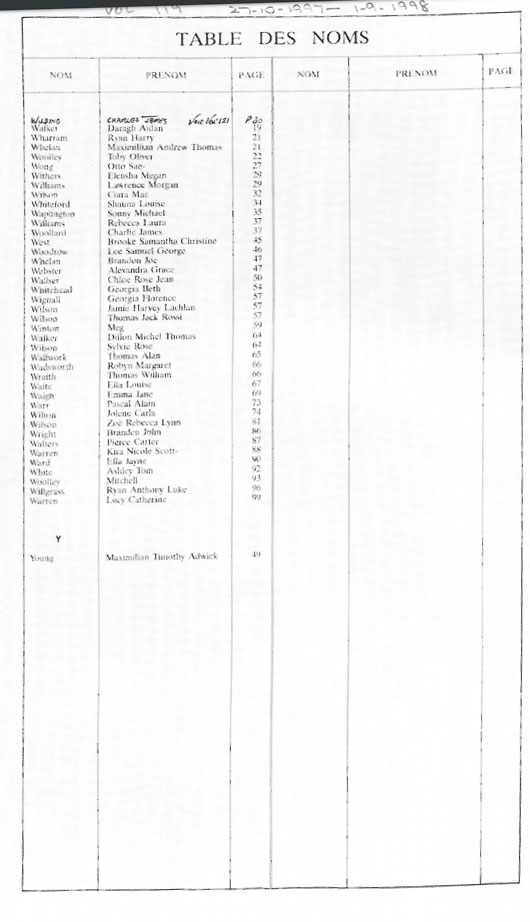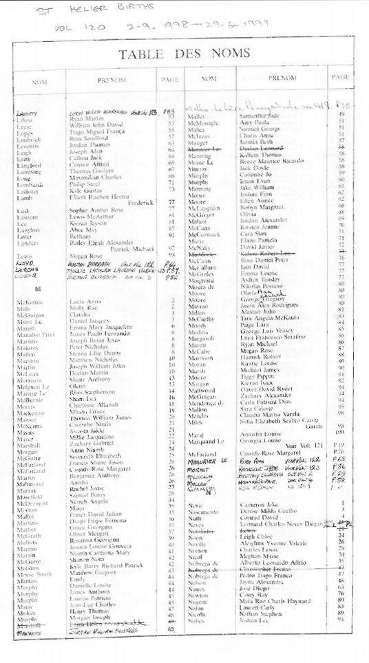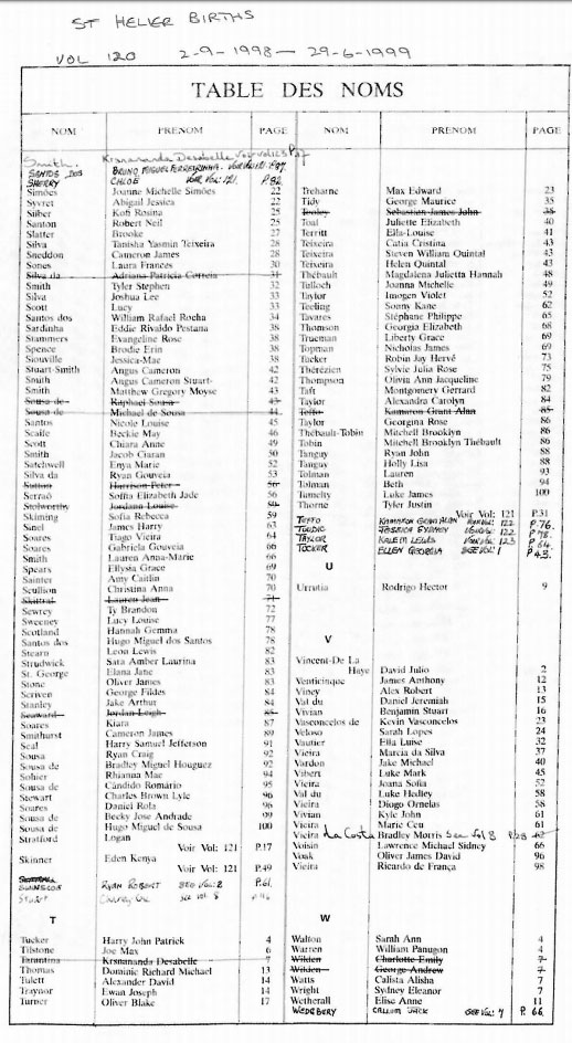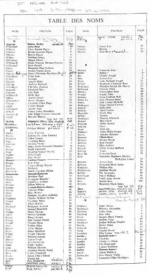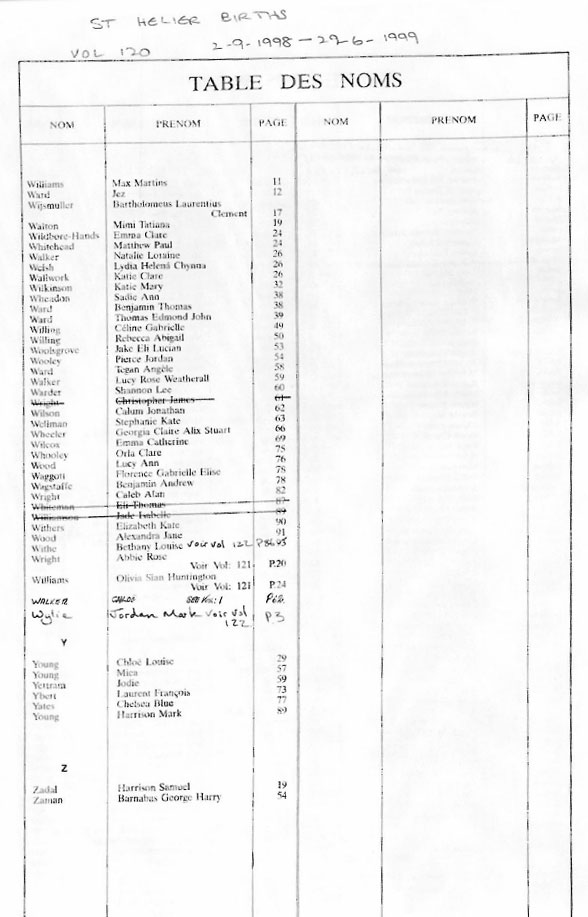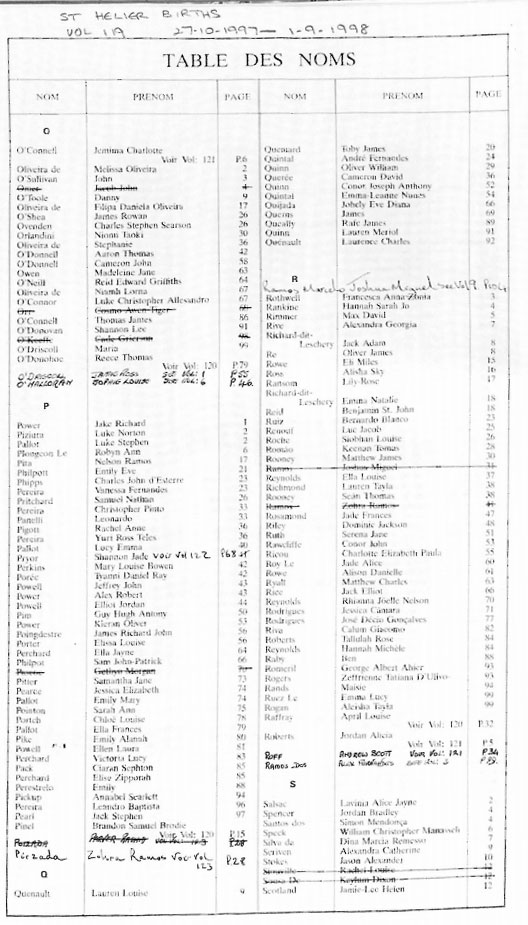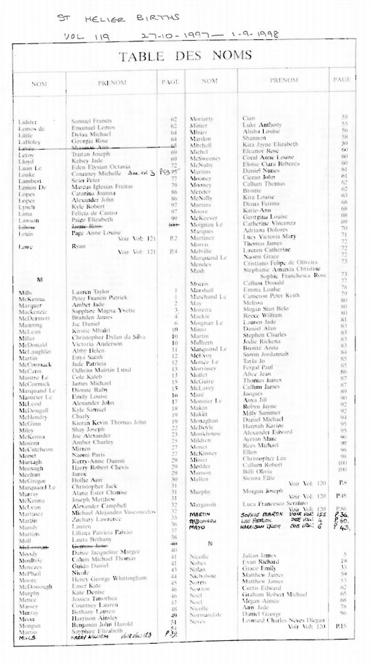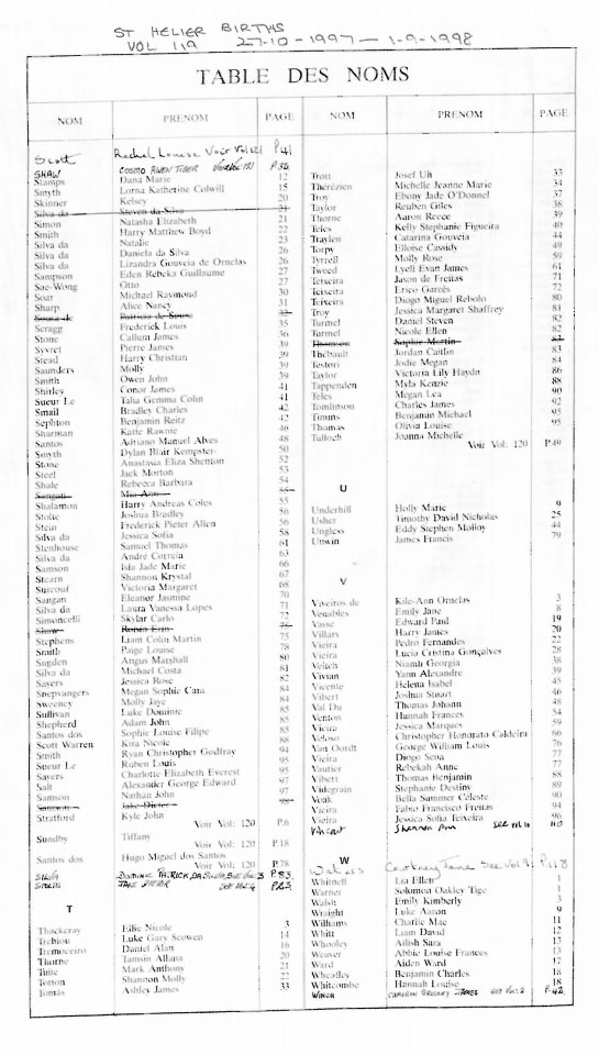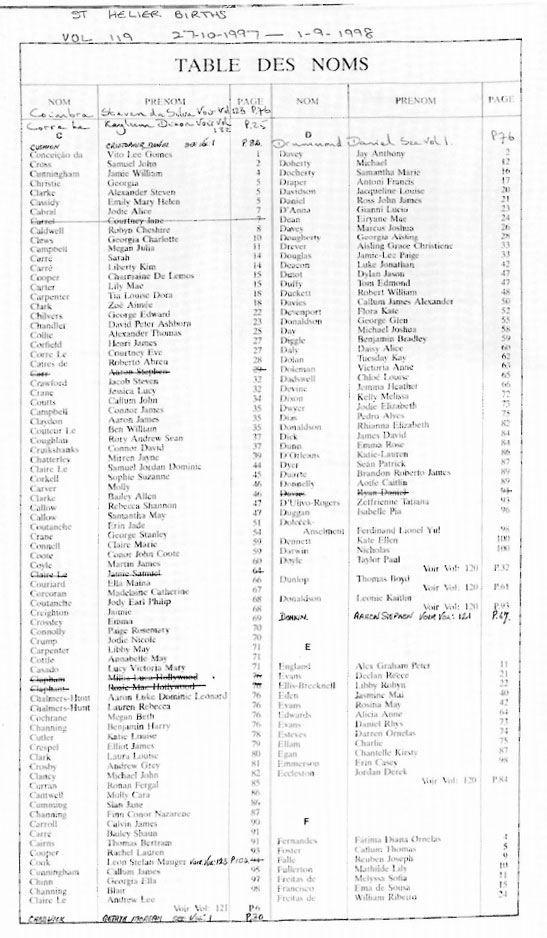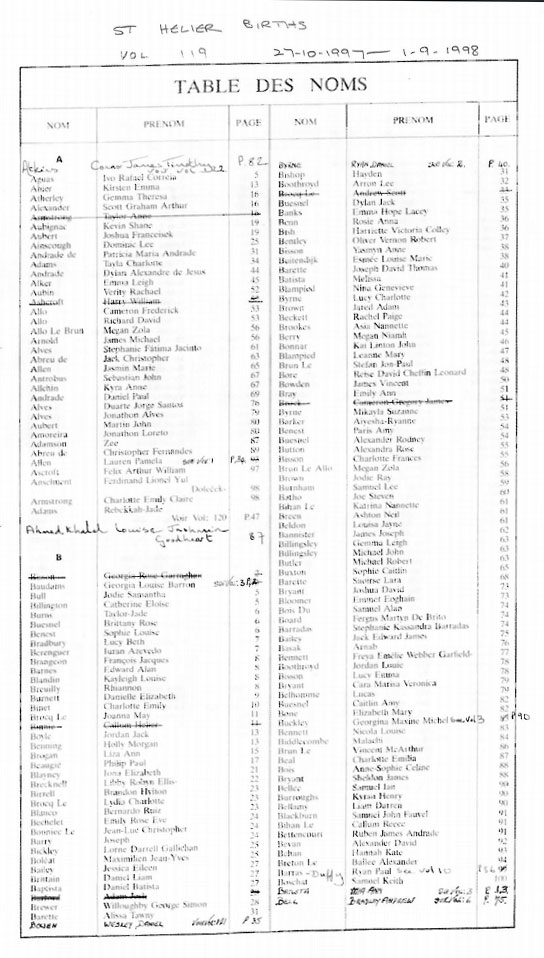 This page contains images of the Registrar's indexes of births registered in St Helier from 27 October 1997 to 29 June 1999