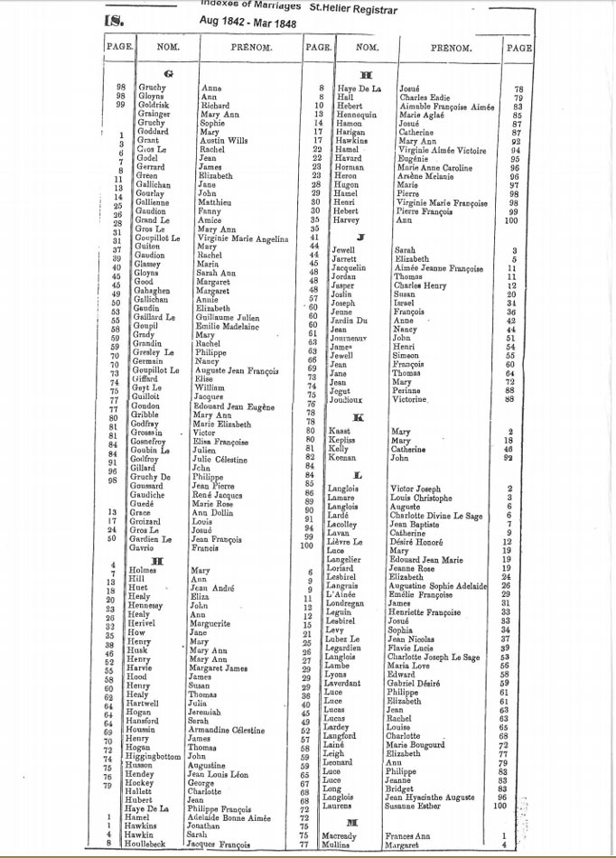 St Helier non-Anglican marriages indexes 1842-1852