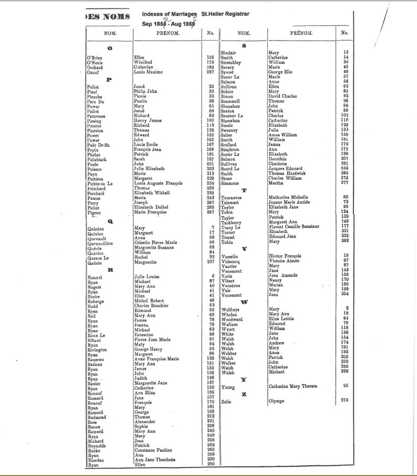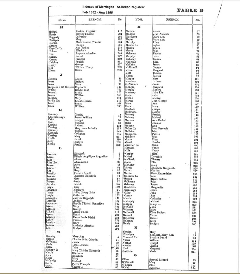 St Helier non-Anglican marriages indexes 1852-1859