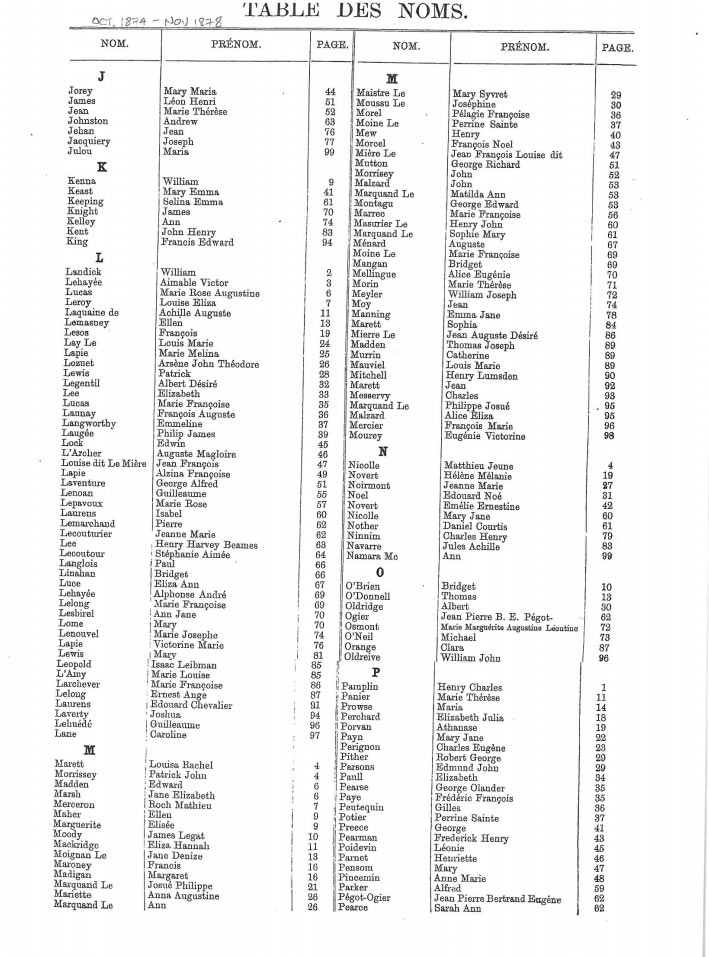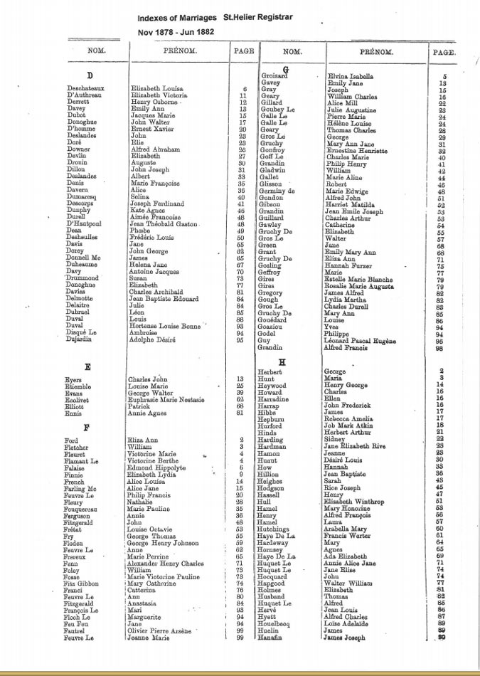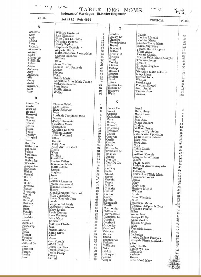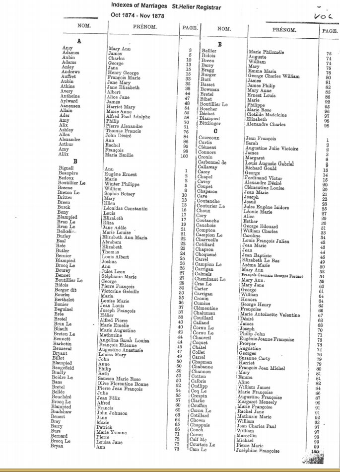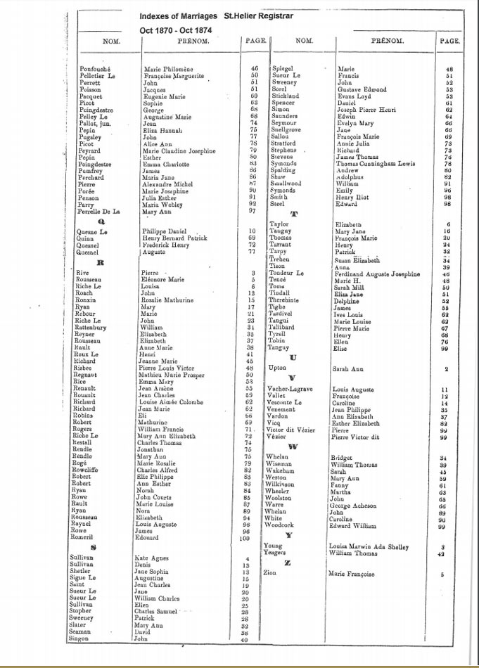St Helier non-Anglican marriages indexes 1870-1889