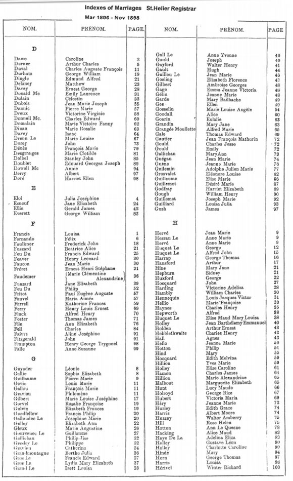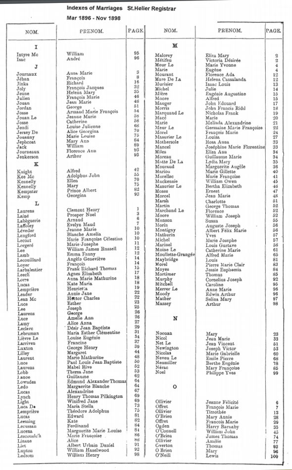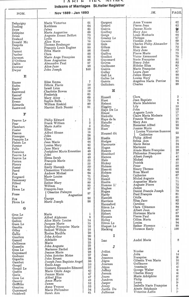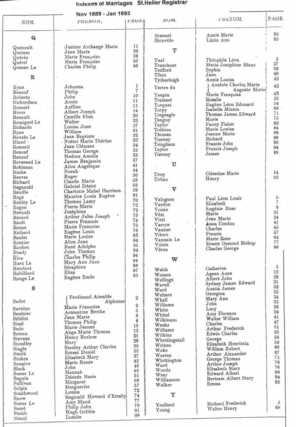 St Helier non-Anglican marriages indexes 1889-1898