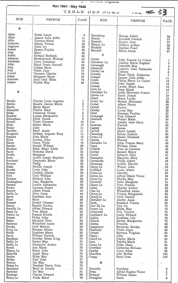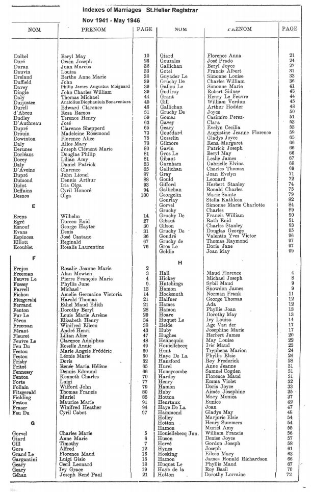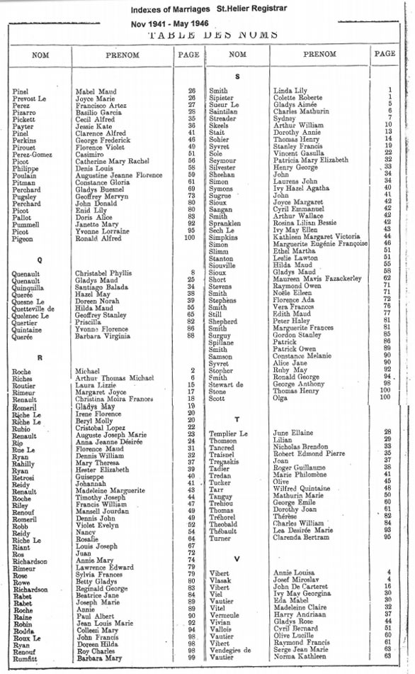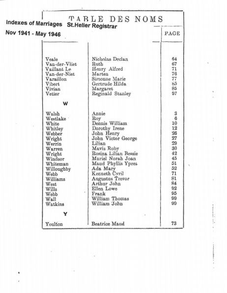 St Helier non-Anglican marriages indexes 1935-1946