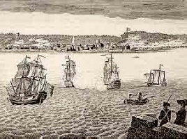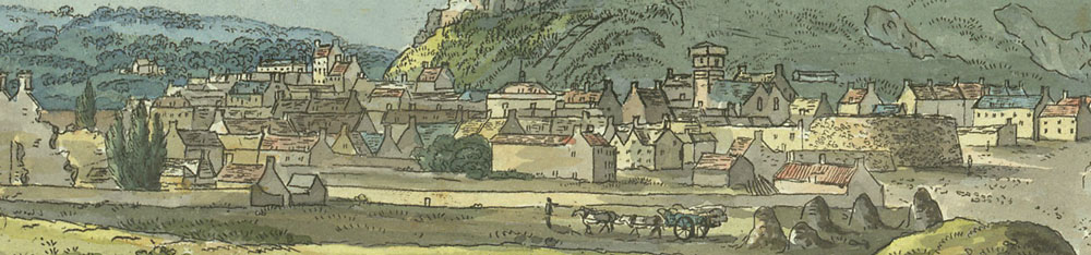 This enlargement of a section of a painting of St Helier, viewed from the west, by George Heriot, dated 1790, is believed to give a much better impression of what the town was like at the time. Shortly after this a dramatic population growth saw the town expand considerably. This painting is in the collection of the British Library