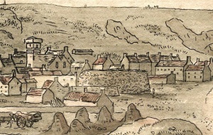 An impression of St Helier in the 16th century. Unless a large number of these buildings were demolished and the town's layout subsequently changed dramatically, it is unlikely that it actually looked anything like this