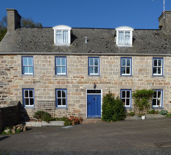 The 18th century two-storey five-bay house retains fine stonework on the south elevation, showing its different stages of development. The farmhouse and outbuildings contribute to the rural setting.