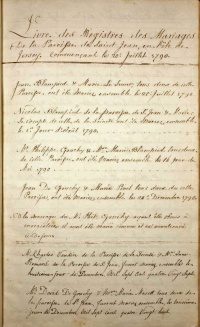 A page of 16th century records in a St John marriage register