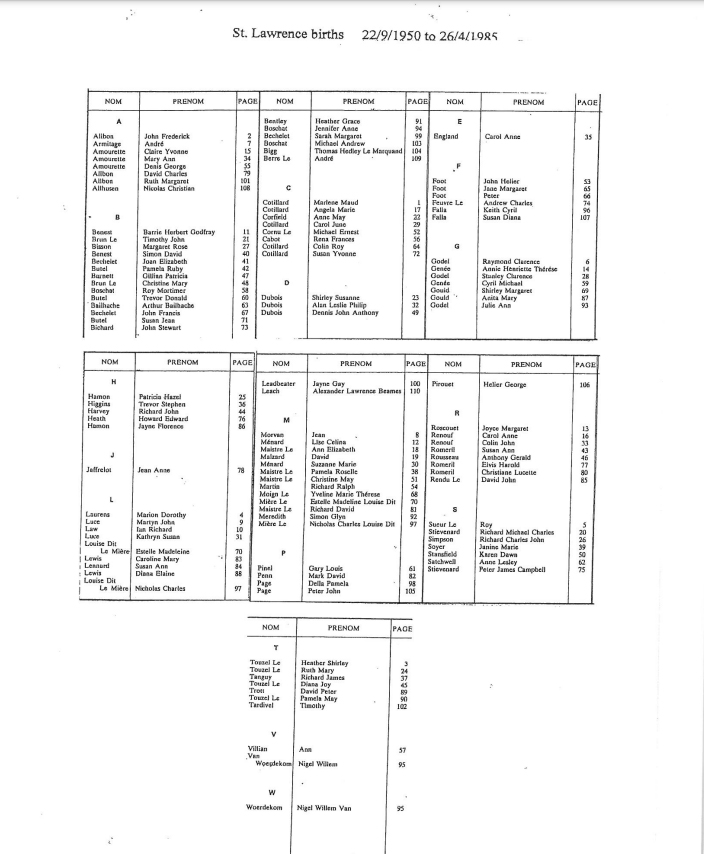 This page contains images of the Registrar's indexes of births registered in St Lawrence from 1903 to 1985