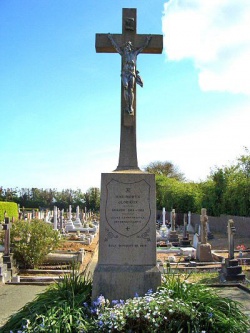 The memorial to those parishioners of Our Lady of the Annunciation and the Martyrs of Japan, St Martin, who fell in the Great War takes the form of a tall crucifiction cross on a granite plinth, in a prominent position in the cemetery. There are 34 names inscribed on the memorial