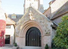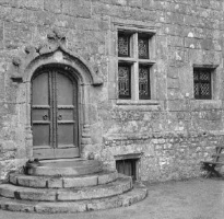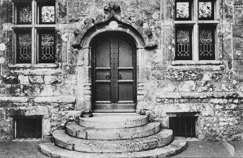 On this side is now the chief entrance to the manor, a heavy studded door under a stone arch forming the inner angle of the wings.