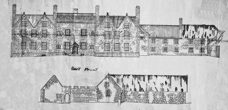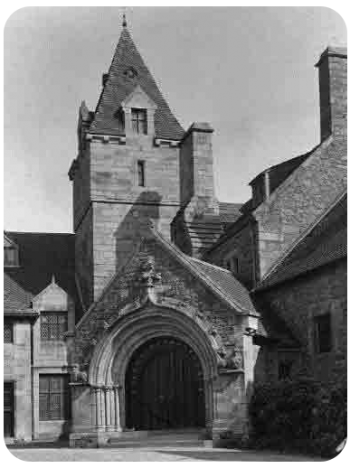 The wings, which contain most of the principal rooms now in use, were built from 1600-1650. The central portion between the wings, which was probably erected at about the some time as the existing rampart, dates from the 16th century, but was once the front of much older building. Part of the eastern facade is also of earlier design, and on the south-west, overlooking a picturesque terrace, is a very ancient frontage which is attributed to the 15th century. The square tower dates from the late 12th or early 13th century. Time has blended and mellowed the whole to on edifice of imposing proportions.