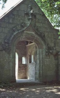 The Manor would have been most open to attack on the north, and here no doubt was formerly the great courtyard, surrounded by a high wall enclosing the dependant buildings. There are still traces of the original gateway. Here, too, on a smooth stretch of turf stands the colombier, ancient adjunct to a seignorial dignity, which the Lord of the Manor alone might possess.