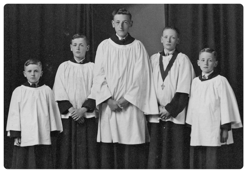 During the Occupation, St Paul’s choir had three choirmasters. The first was Charles Journeaux, then Ronald Le Marinel, and finally Eric Le Conte. The choir had a problem because many of its young boys had been evacuated from Jersey. The important decision was taken to invite the ladies from the parish to augment the choir. Throughout the Occupation services, complete with hymns, canticles, psalms and even a simple anthem on festive occasions, were regularly held on Sunday mornings.
