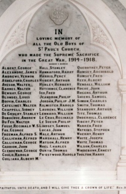 There are 67 names on the St Paul's Church memorial to members of the congregation who fell during the Great War.