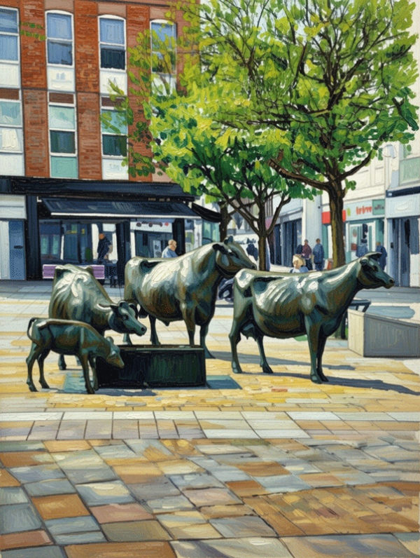 Jersey cow sculpture in Wests Centre