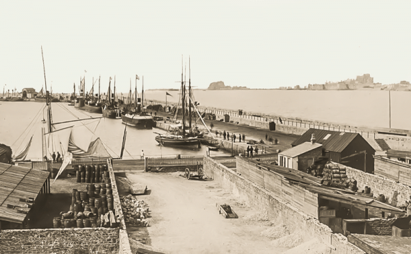Between 1829 and 1835 a new sea wall was built forward of the earlier shore line of Saint Helier, thus formalising the quayside as the Esplanade, and giving rise to yards and warehouse development between the new quay and Commercial Street behind. About half way across what is now the north side of the Island Site, the sea wall turned south-eastwards.