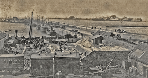 The quayside was extended south-westwards by infilling forward of the earlier wall, to a new wall to the south of the Island Site, which formed the end of the new harbour, enclosed on the west by Albert Pier. This work began in 1847 and was completed in 1853.