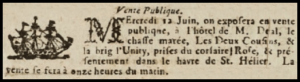 On the 20th Les Deux Cousins a captured French vessel loaded with wine and eau de vie arrived at St Helier Harbour having been captured by the privateer Rose. It is said that the Rose has captured the brig Unity of about 120 tons, which will arrive soon.