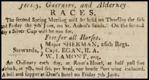 Gazette de l'Ile de Jersey was published from 5 July 1800, printed by G Angot and Philippe Mourant. But it soon vanished. Quite what happened after 1800 is uncertain, but the Societe collection has a very erratic set of editions. From 1810 onwards we have used John Stead's publication Gazette de Jersey and Weekly Advertiser and Philip Mourant's title, when available, plus the new Gazette de Cesaree to build as comprehensive a picture of local news as possible.