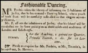 Gazette de Cesaree: This week has been remarkable for its festivities. On Monday an elegant entertainment was given by Lady Imhoff. On the same day a ball and supper by Miss Lempriere, to a numerous party of young people.