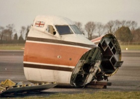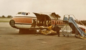 An Air UK Herald being cut up for scrap at Jersey Airport