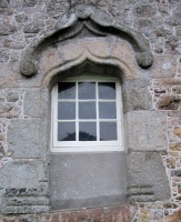 The granite wall that runs along the east side of the farm group incorporates various interesting features (most believed to have come from the medieval chapel of St Symeon, formerly on site): a datestone lintel above the Journeaux doorway; two decorated window lintels and a 16th century round arch niche with attached cable-moulded shafts (possibly a benitier) around the side entrance arch; and a small 15th century ogival doorway with a fleur-de-lys finial built into the wall to the north of the arch.