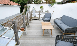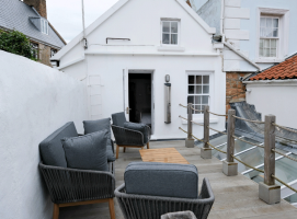 Outside is a pretty enclosed courtyard garden over two levels that is accessed either from the kitchen or one of the bedrooms.