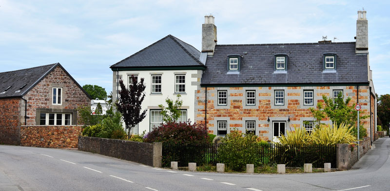 This large block of inter-connected fields is today known as the venue of the West of the Island Show. These purchases gave Le Brocq between 46-51 vergees, which from 1747 were farmed from The Yews. Le Brocq then turned his attention to his buildings at The Yews, which he refaced in dressed granite, using stone from L'Etacq to highlight window and door apertures. Matching this stonework in every detail on its northern and western facades, the rectangular building attached to the west gable of The Yews will have been constructed at the same time, no doubt replacing an earlier building on the same spot.