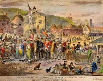 Artist John Sullivan's depiction of the Royal Square on market day. It is not known when what was previously known as the marketplace became the Royal Square, but Sullivan's painting, dedicated to Queen Victoria, is believed to be an interpretation of what the market looked like some considerable time before