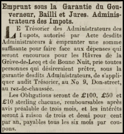 The following year the States authorised a third loan to be taken out to raise enough money to complete the work. Philip Gosset, the manager of the Jersey Banking Company (and Treasurer of the States) bought £5,000 of the bonds using his own money taken from the Jersey Mercantile Bank. Two days after the money was safely transferred, the Mercantile Bank, whose manager, Mr Armstrong, was Gosset's brother-in-law, suspended operations.