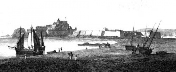 Before St Helier Harbour was built ships were unloaded at the water's edge