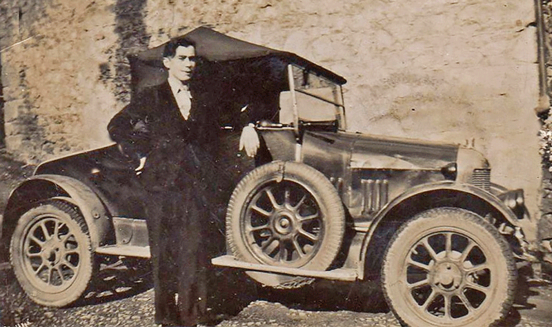 Everard Le Breton in his 'bull-nose' Morris in 1933