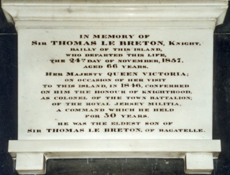 When Queen Victoria visited Jersey in 1846 Le Breton commanded the Militia and rode at the head of the procession. He was knighted the following February at St James's Palace.