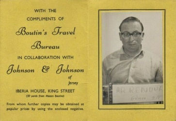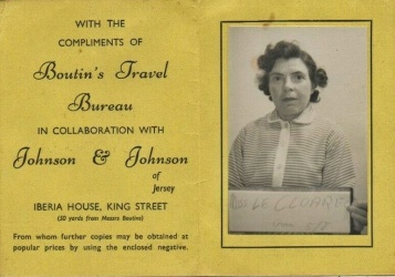 When Jersey's tourism industry was at its peak tens of thousands of visitors flooded in by boat and plane, no passports needed. Indeed, many would not have had one because they had probably been to Blackpool the summer before and would head for Bognor the next year. Then they decided that they fancied a day trip to France, but how would that be possible without a passport? The answer that travel agents offering a day return package were allowed to issue a temporary identity card, valid just for the day in question. Everybody was happy: Jersey's attraction as a holiday destination was enhanced; it was good business for the French, who offered coach trips, excellent lunches and shopping opportunites to their transient visitors; and the ferry companies and tour operators prospered, too. The temporary cards usually had to be surrendered at the end of the day, although some are still in existence, but travel company Boutins offered their clients a complementary copy of the photograph taken for the card as a memento.